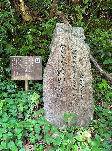 境内からは、市木であるイヌマキの並木道「いにしへの道」があり、薩摩独特の士風と文化の基盤を築き、薩摩藩士の郷中教育の規範となり現代にも大きな影響を与えている「日新公いろは歌」を記した四十七の石碑が並びます。奥には、日新公とその三男島津尚久公の墓所があります。