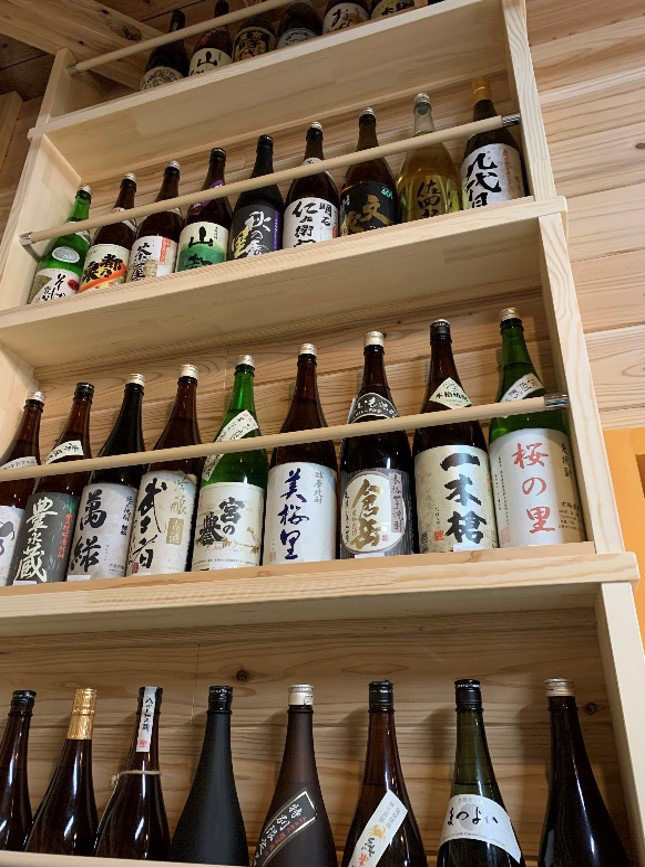 ぜひ、プレミアものから希少ものまで多種類と数量圧巻の焼酎棚も拝観ください。