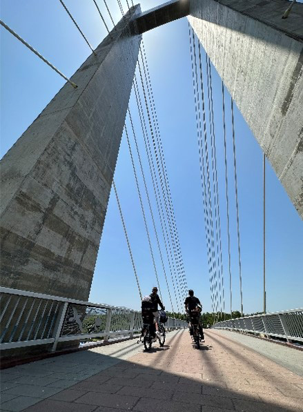 万之瀬川河口に架けられた旧加世田市と旧金峰町を結ぶ全長405mの歩行者・自転車走行者専用のPC斜張橋で、日本三大砂丘の一つである吹上浜の白砂青松の美しい海岸線沿いを縦断するサイクリングロードの中でも絶好のビューポイントです。
