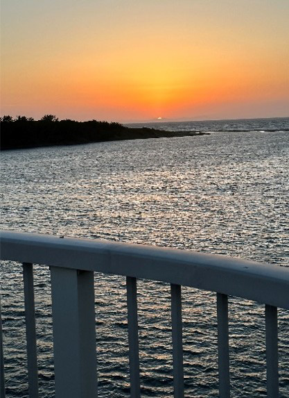 橋の名称のとおり夕陽に映えた美しい姿は、周囲の自然景観ともよく調和しており、またこの橋から眺める東シナ海の落陽も潮の香りとともに見る人の心を癒し、大きな感動を与えてくれます。
