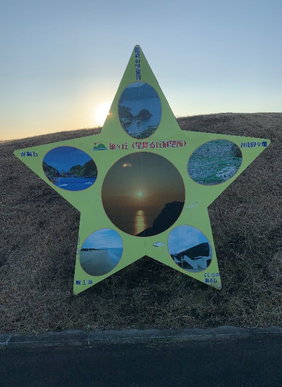 山の麓から昇る朝陽、東シナ海に沈む夕陽はとても美しく、観る人の心を癒し、感動を与えてくれます。また、夜の星空もとても綺麗で、近くにある「星降る丘」は、まさに亀ケ丘にぴったりのネーミングです。