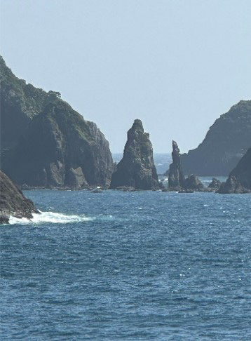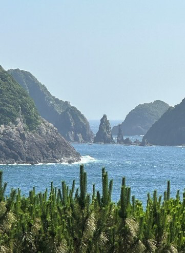 坊津歴史資料センター「輝津館」からは、双剣石一帯の素晴らしい景色の一望もできますので、ぜひお立ち寄りください。