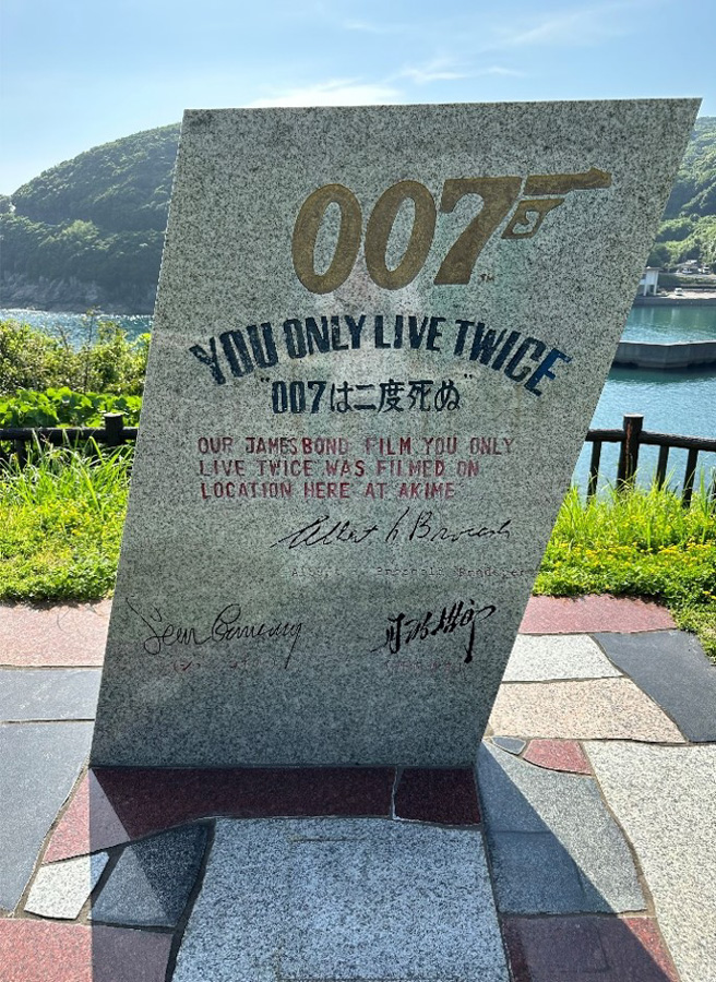 記念碑には、「丹波哲郎」と「ショーン・コネリー」のサインが刻まれています。撮影された当時とほとんどかわらない秋目の景観に、今でも国内外から多くのファンが訪れる人気のスポットとなっております。